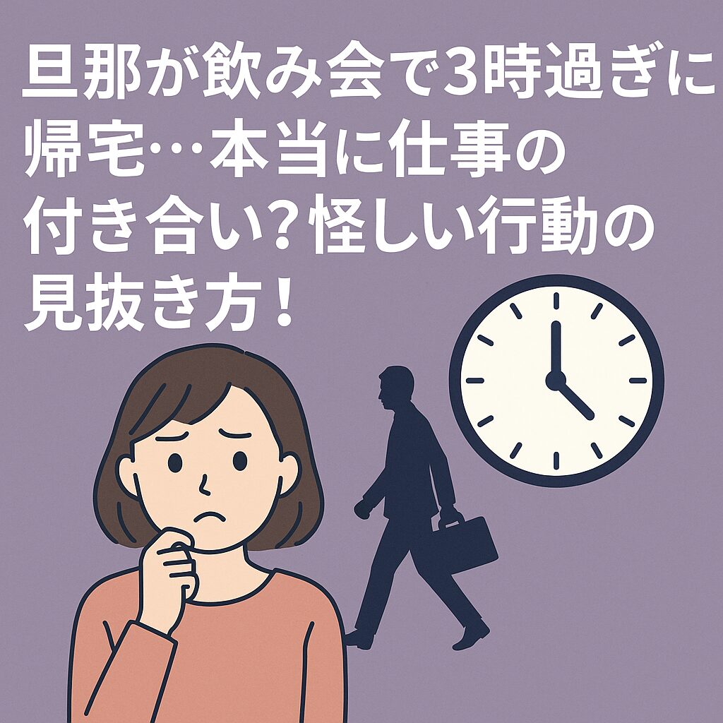 この記事では、旦那が飲み会で3時過ぎに帰宅する時の怪しい行動の見抜き方・浮気の可能性・そして心の整理法を、元キャバ嬢の経験も交えてわかりやすく解説します。